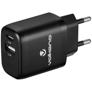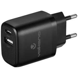 Volkano Cupla Series 5v/2.4a 12w Dual USB-A & USB-C Wall Charger - Black