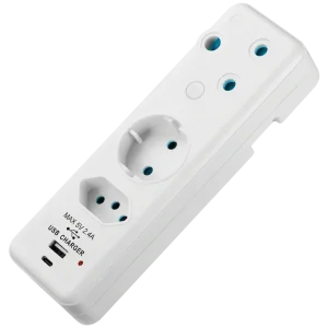 Switched 3-Way Schuko Adaptor with Type C + USB
