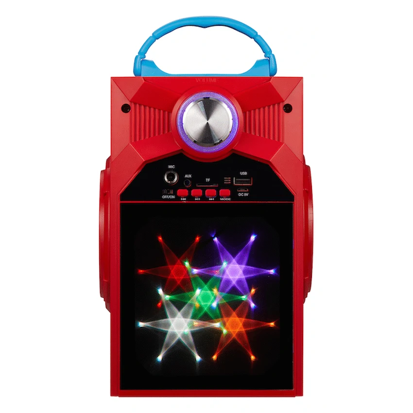 With Bluetooth 5.3 connectivity, your little one can stream songs wirelessly from any smartphone or tablet. Plus, you get multiple audio input options, including USB, SD card, AUX, and even FM radio—making it the perfect choice for any mini DJ or performer. The front panel lights up with vibrant colours, adding a party vibe to every performance, while the compact build makes it ideal for use at home or on the go.