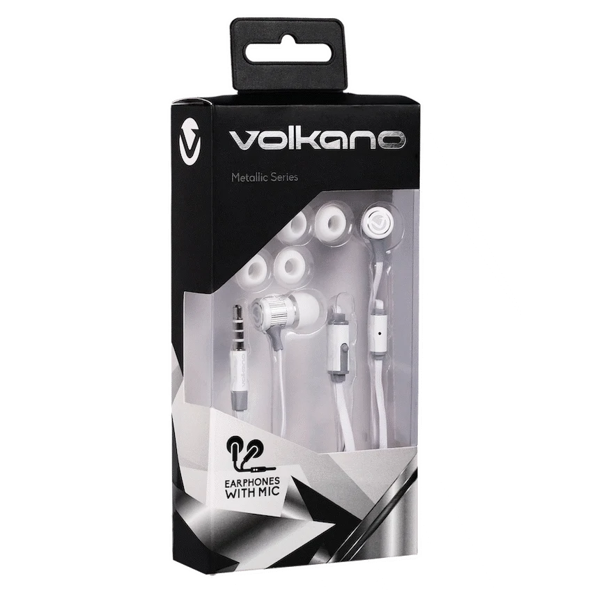 Volkano Earphones with Mic -METALLIC SERIES – White