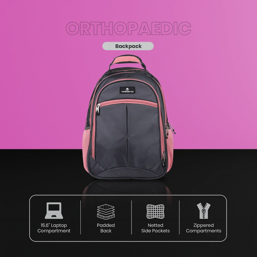 This orthopaedic, student and everyday backpack is designed with large capacity storage and practical features to handle busy daily routines. The spacious main compartment easily holds books, laptops, and essentials, while additional pockets keep smaller items organized and accessible. Made from strong, durable materials with reinforced stitching, it withstands the demands of daily use and heavy loads. Comfortable padded straps ensure ease of carrying, even on long days, while the lightweight build adds to overall convenience. Combining strength, functionality, and reliability, this backpack is a versatile choice for students or anyone needing a dependable bag for everyday use.