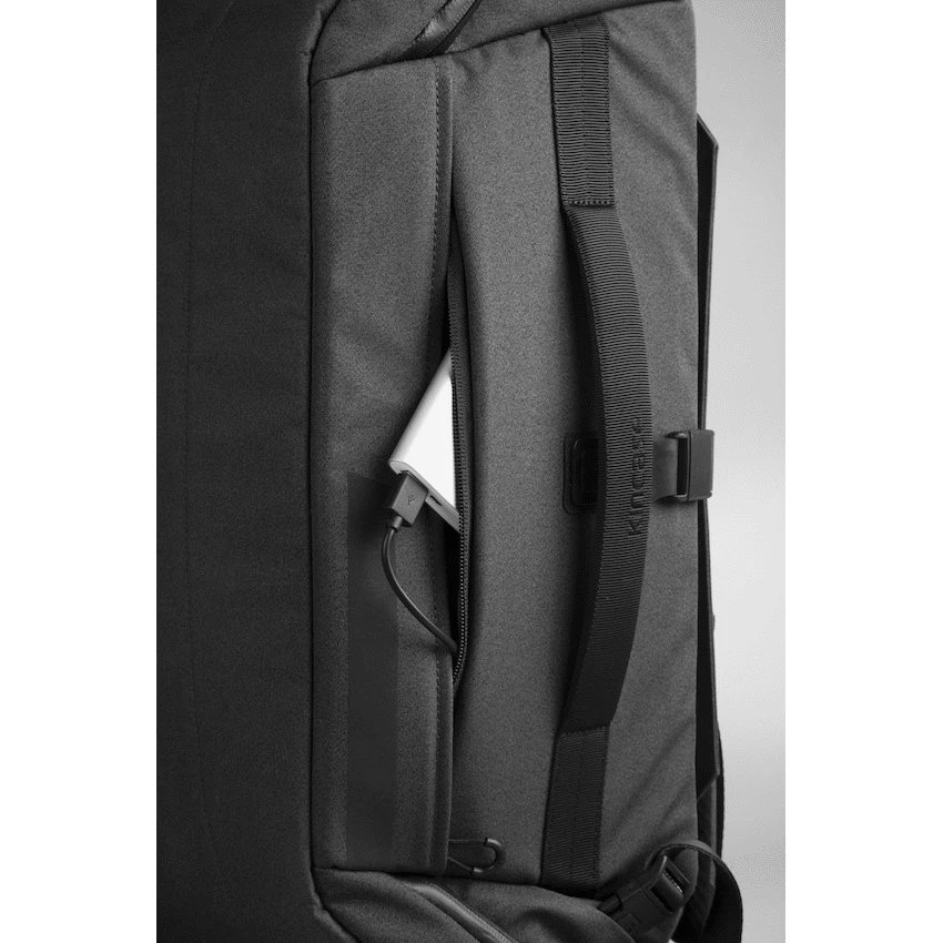 The bag also has an anti-theft lock buckle, a separate ventilated shoe compartment, and a charging port for convenient charging. The patented slant plug charging technology allows you to charge your devices on the go.