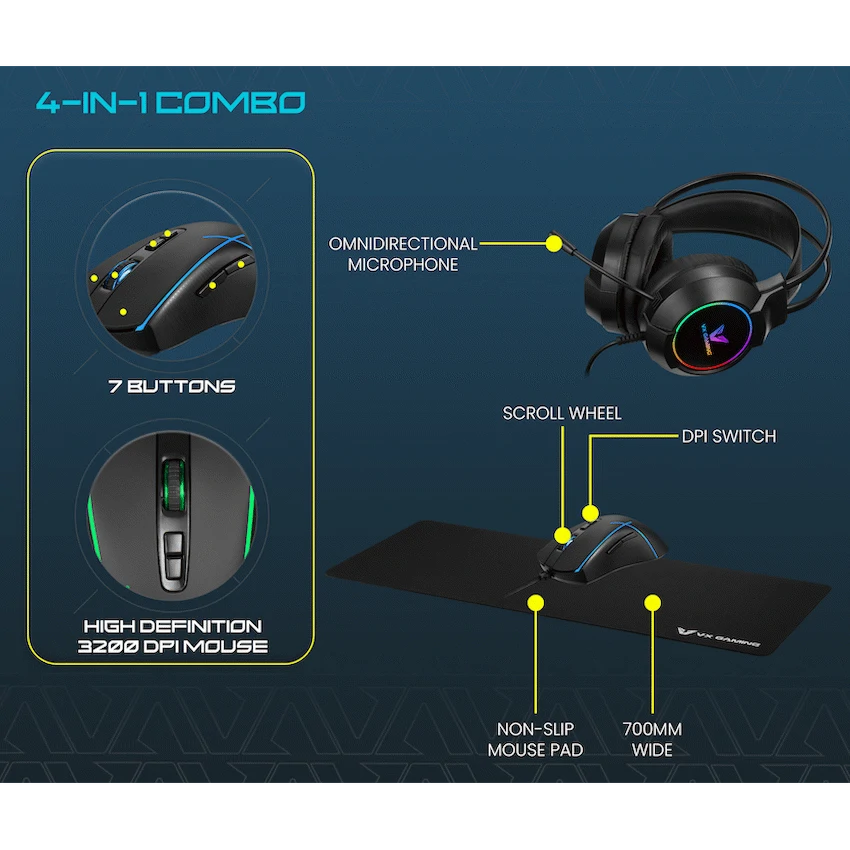 Get everything you need to elevate your setup with the VX Gaming Heracles 4-in-1 Combo—perfect for gamers in South Africa seeking style, performance, and convenience in one bundle. Featuring a rainbow backlit gaming keyboard, a 3200 DPI gaming mouse, a deep-bass stereo headset, and a non-slip mousepad, this combo delivers serious value for entry-level and casual gamers alike.
