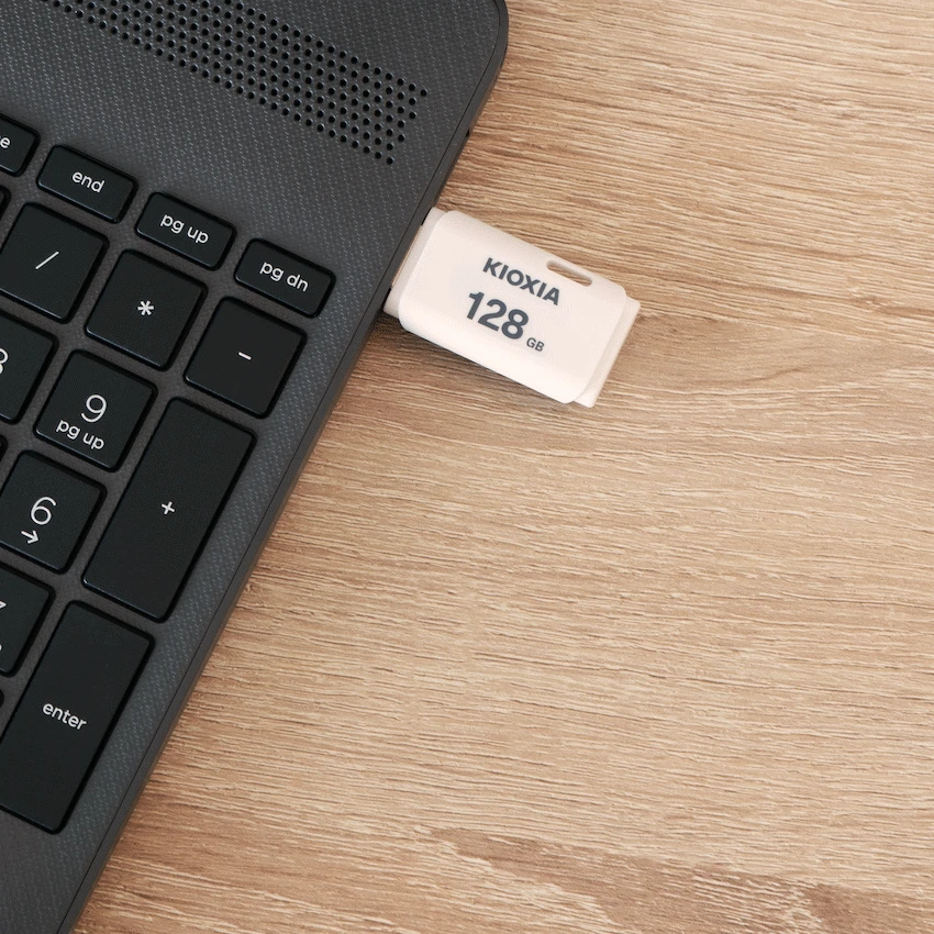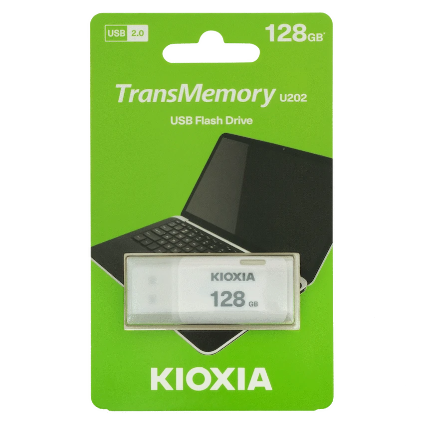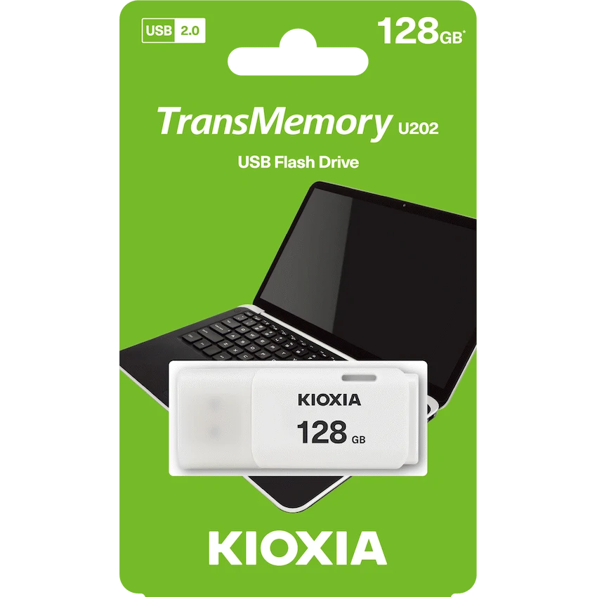 A 128GB USB flash drive in a modern white design, offering high-capacity and dependable performance. Suitable for storing large media files, backups, and project data.