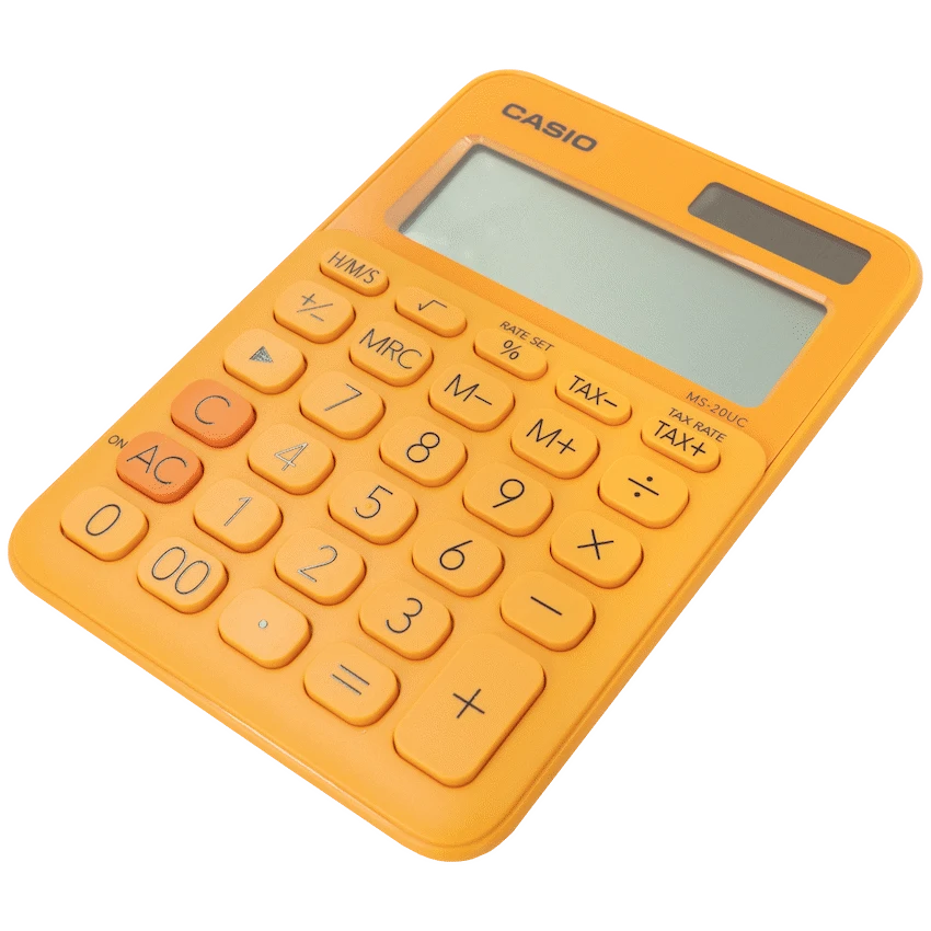 Stay efficient and organised with the Casio MS-20UC Desktop Calculator, designed for everyday business, study, and home use. Combining reliability with vibrant style, this sleek orange calculator features a large 12-digit display and an ergonomic layout that makes number entry fast and comfortable.