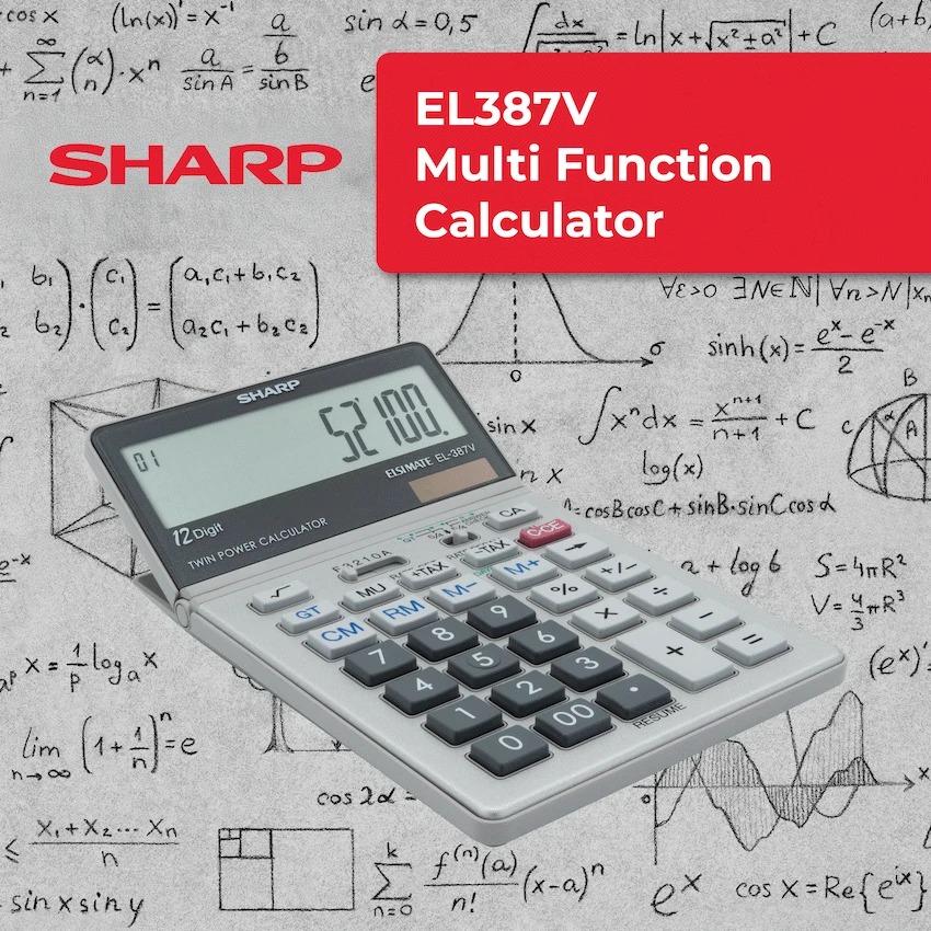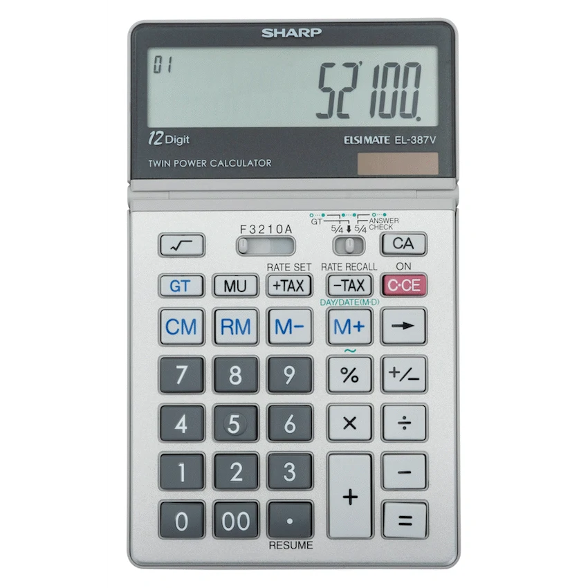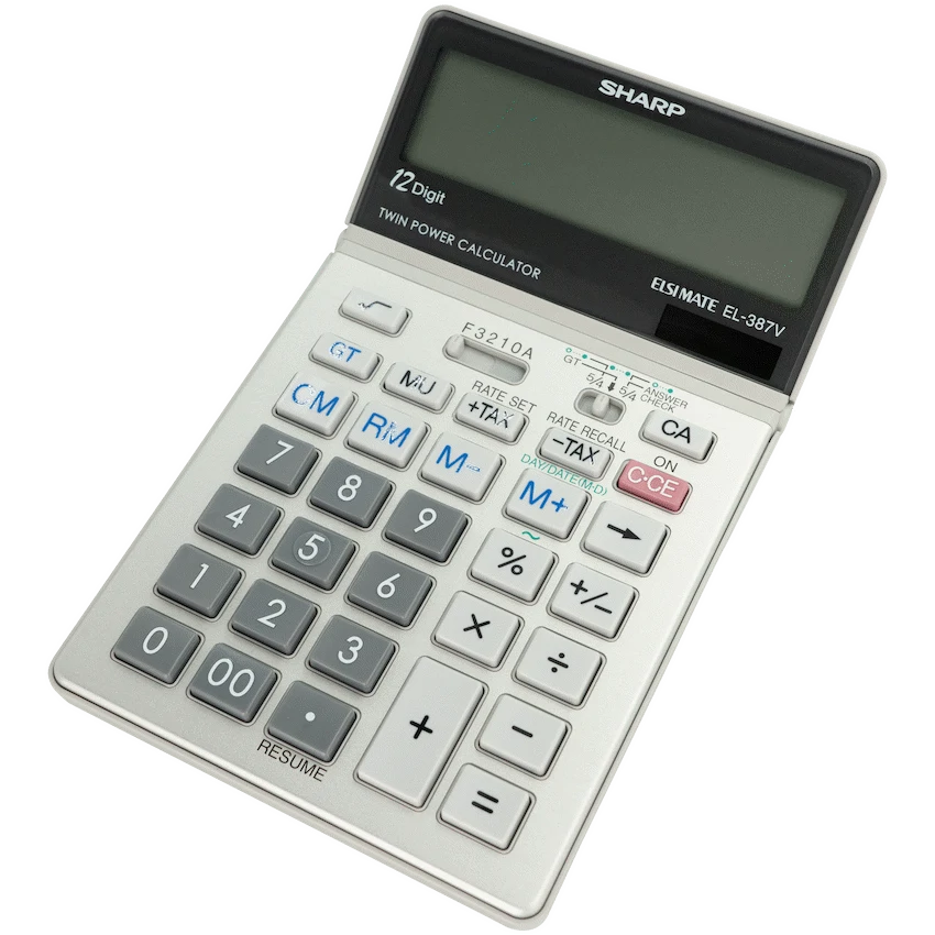 The Sharp EL-387V Semi-Desk Calculator is a versatile and multifunctional tool designed to make everyday office and business calculations faster and more efficient. It features an extra-large 12-digit tilt display with a convenient kick-stand for ergonomic viewing, ensuring comfort during long hours of use. With its GT function, totals are automatically accumulated, while the resume function allows you to continue calculations with ease. Useful features such as tax calculation, day/date calculation, and a line counter make this calculator a practical choice for financial and administrative tasks. The answer check function helps confirm accuracy, while the correction key and double zero key improve efficiency and reduce errors. Reliable and easy to operate, the EL-387V is an excellent semi-desk calculator for home, school, or office.