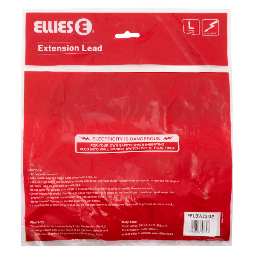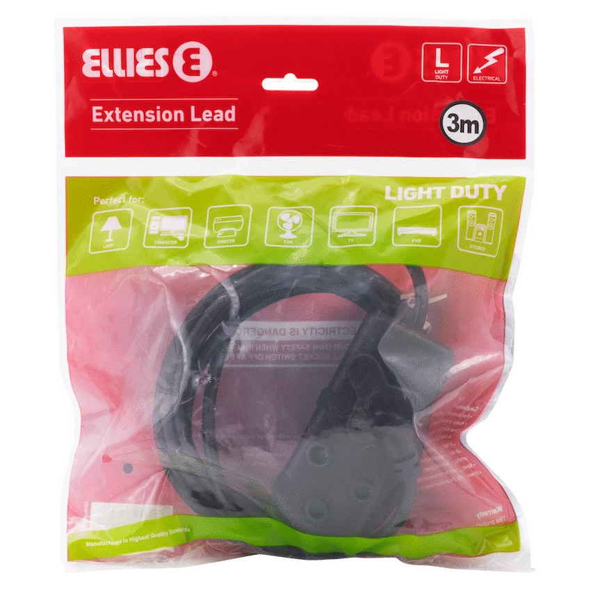 Power your daily essentials safely and efficiently with the Ellies Side-by-Side Light Duty Extension Lead – 3m. This compact and practical light duty extension lead is ideal for home, office, or study use—perfect for low-consumption devices such as phone chargers, desk lamps, and Wi-Fi routers.