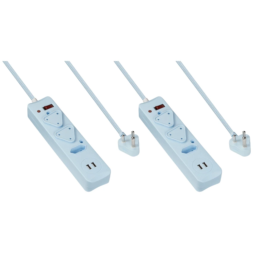 Compact yet powerful, the Switched 3-Way Medium Surge Protected Multiplug with Dual 2.4A USB ports is the ideal solution for powering devices and charging electronics simultaneously. With a 0.5m braided cord, this blue multiplug adds a splash of colour while delivering safe and convenient connectivity for home, office, or bedside use.