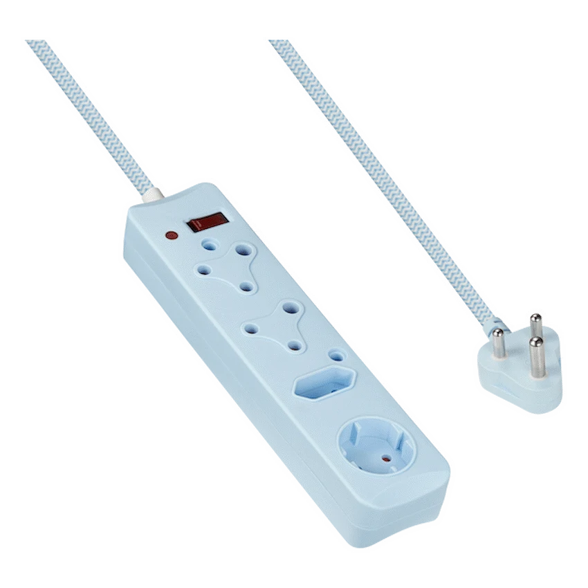 Crafted with a durable 0.5 m braided power extension cord, this unit combines safety with sleek design and flexibility. It includes four outlets (2 × 16 A, 1 × 10 A, and 1 × 6 A), providing a total load capacity of up to 3,500 W—ideal for everyday electronics like TVs, PCs, and small appliances.