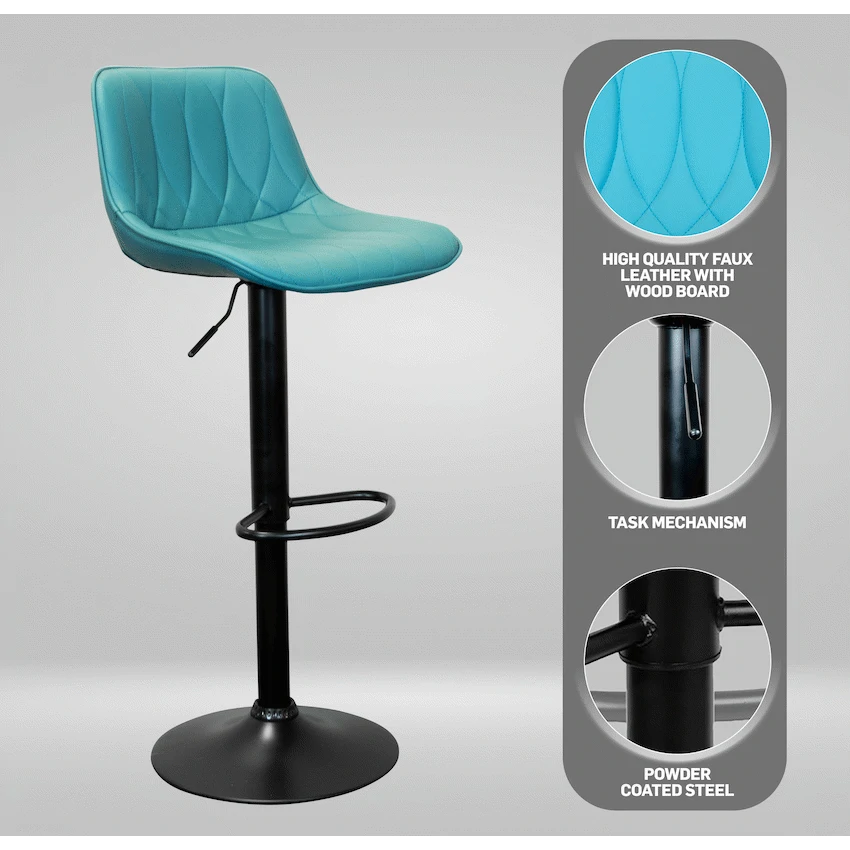 Everfurn Austin Barstool Blue-Green, PU, Powder Coated Steel Base, Height Adjustable