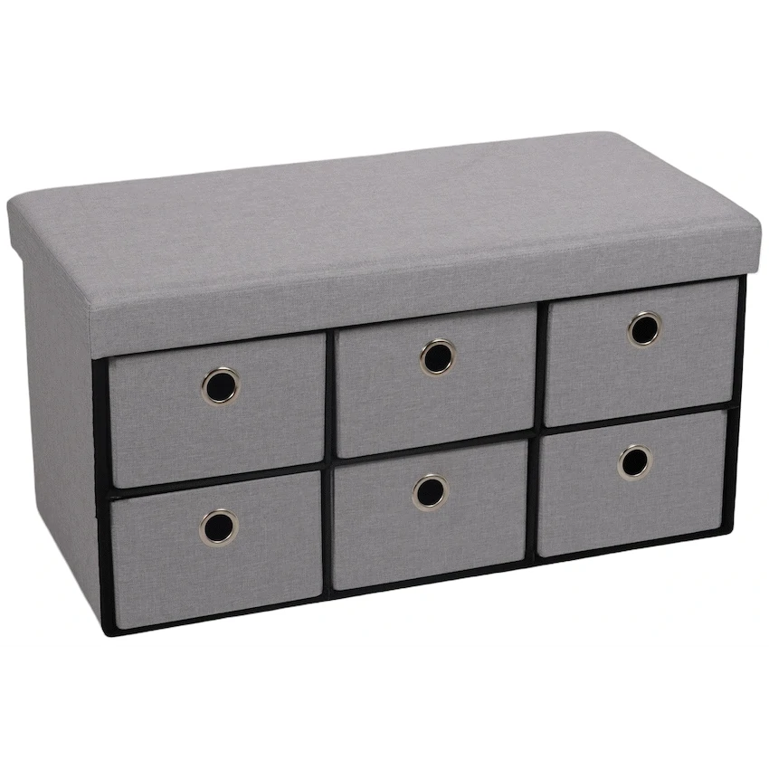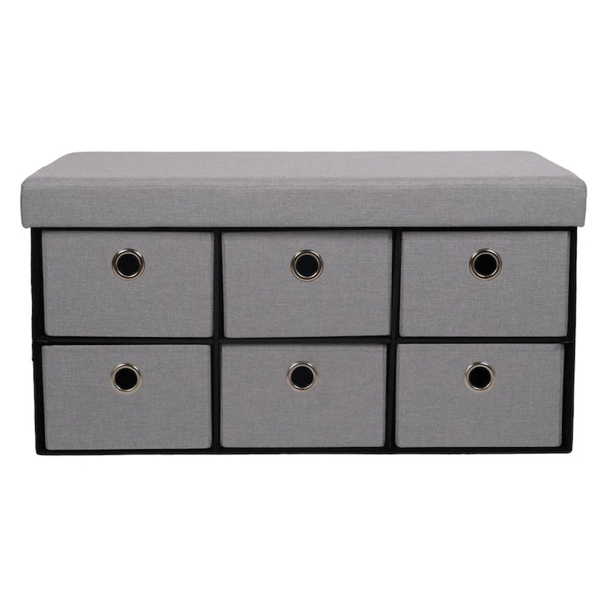 Entire ottoman folds flat into its lid for compact storage, making a space-saving solution.