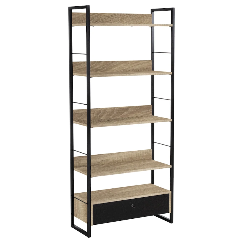 Baltic Wide Bookshelf with Large Drawer and Powder Coated Steel Frame Durable Melamine Powder Coated Steel Frame x1 Drawer for Storage