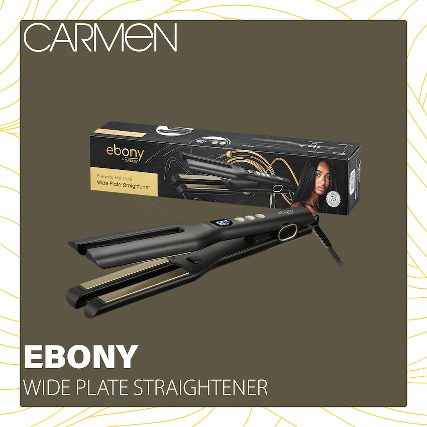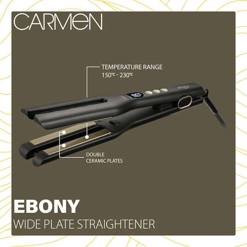 Achieve flawless, salon-quality results at home with the Carmen Ebony Wide Plate Ceramic Hair Straightener. Designed with wider ceramic plates, it glides effortlessly through thicker, longer hair while protecting strands from unnecessary heat damage. The ceramic technology ensures even heat distribution, reducing frizz and leaving your hair smooth, shiny, and perfectly styled every time.