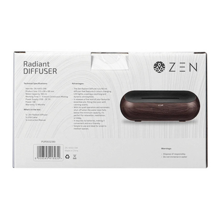 Experience the calming power of the Zen Diffuser, designed to promote relaxation and well-being. Compatible with all Zen Oils, it effortlessly transforms any room into a serene sanctuary.