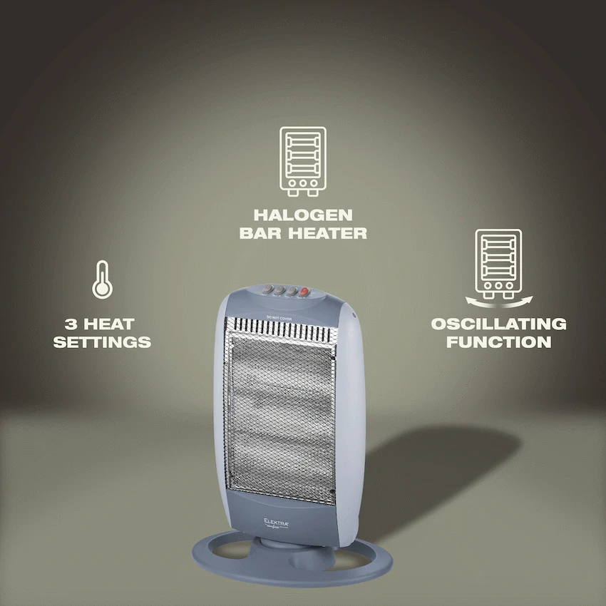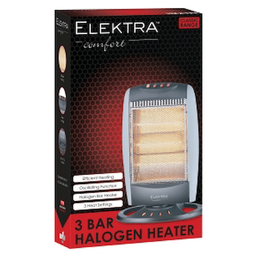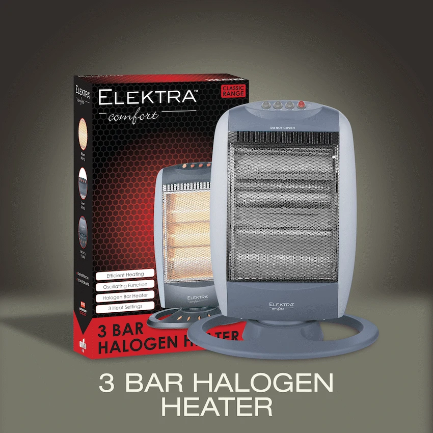 Stay warm in seconds with the ELEKTRA 3 Bar Halogen Heater—designed for instant, energy-efficient heat right where you need it.