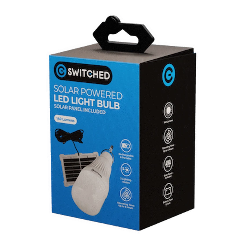 Featuring auto power failure detection, the light turns on automatically during blackouts, while the metal hanging hook makes it easy to suspend in tents, garages, or patios. Compact, rechargeable, and built to last, this Switched solar light is your all-purpose lighting companion for home or travel.