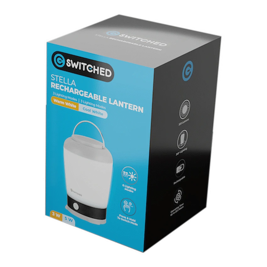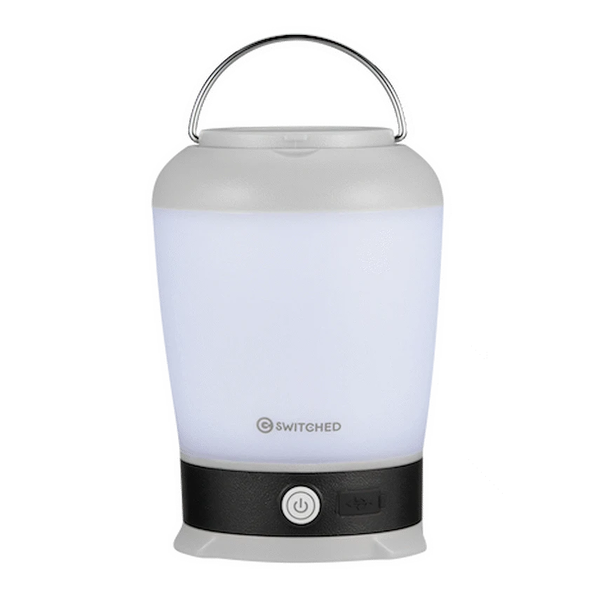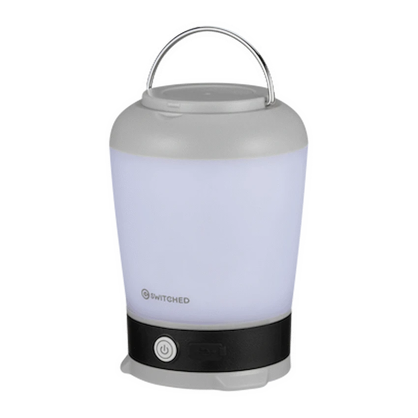Illuminate your space with the Switched Stella Rechargeable Camping Lantern – Grey, a durable and compact USB rechargeable light designed for every occasion—from outdoor adventures to unplanned power outages. This portable lantern offers six brightness settings across both cool and warm light modes, giving you flexible control over ambiance and power usage.
