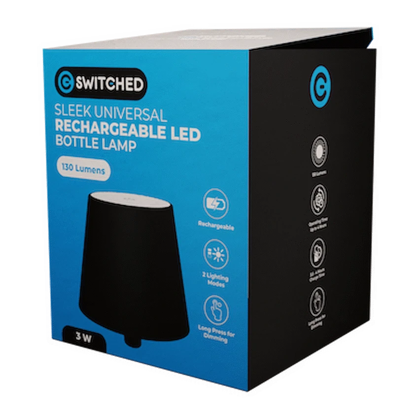 Add a touch of elegance and convenience to any room with the Switched Sleek Series Rechargeable LED Bottle Lamp – Black. Designed for modern living, this USB rechargeable lamp offers the perfect blend of form and function — whether used as a portable bedside lamp, ambient décor piece, or a soft lighting option during power cuts.