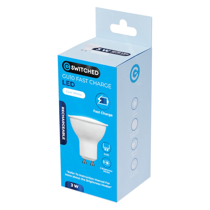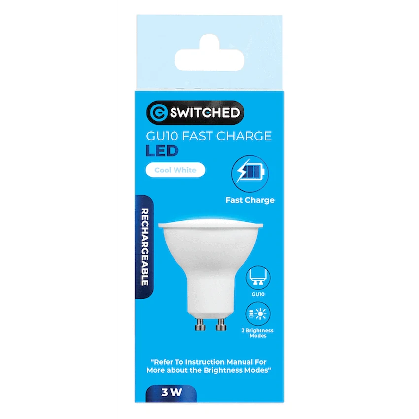 Enjoy uninterrupted lighting with the Switched 3W GU10 Rechargeable Fast-Charge LED Light Bulb, a compact and efficient rechargeable light bulb designed to handle South Africa’s load-shedding demands. With its quick 3–4 hour fast-charge capability, it’s ready to provide light exactly when you need it most.