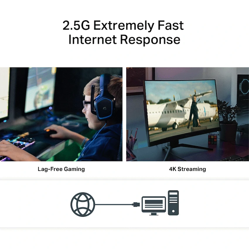 2.5 Gbps Networking – 2.5 Gigabit Ethernet reaches blazing-fast data rates up to 2.5 billion bits per second—2.5× faster than standard Gigabit Ethernet. For bandwidth-intensive tasks, whether local data transfer or Internet access, the TX201 is up to the task.†