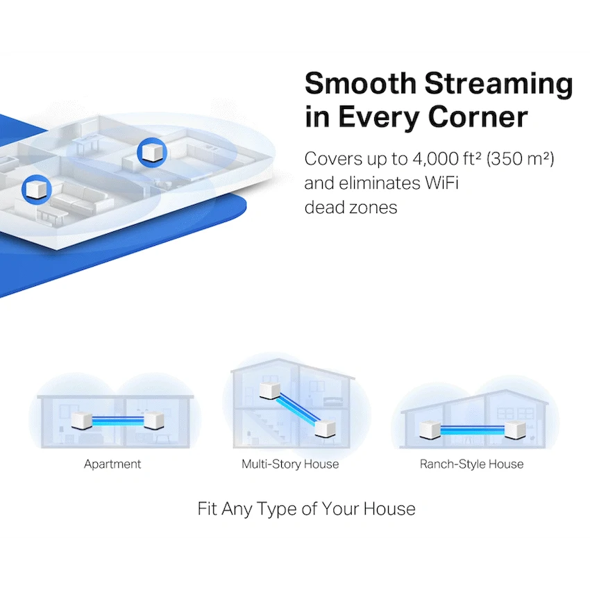 Whole Home Coverage – Blanket up to 6,000 ft² (550 m²) with high-speed WiFi, eliminating WiFi dead zones at your home.