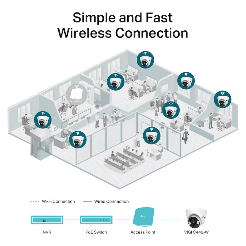 Wireless Connection: Simple and quick deployment with Wi-Fi signals.