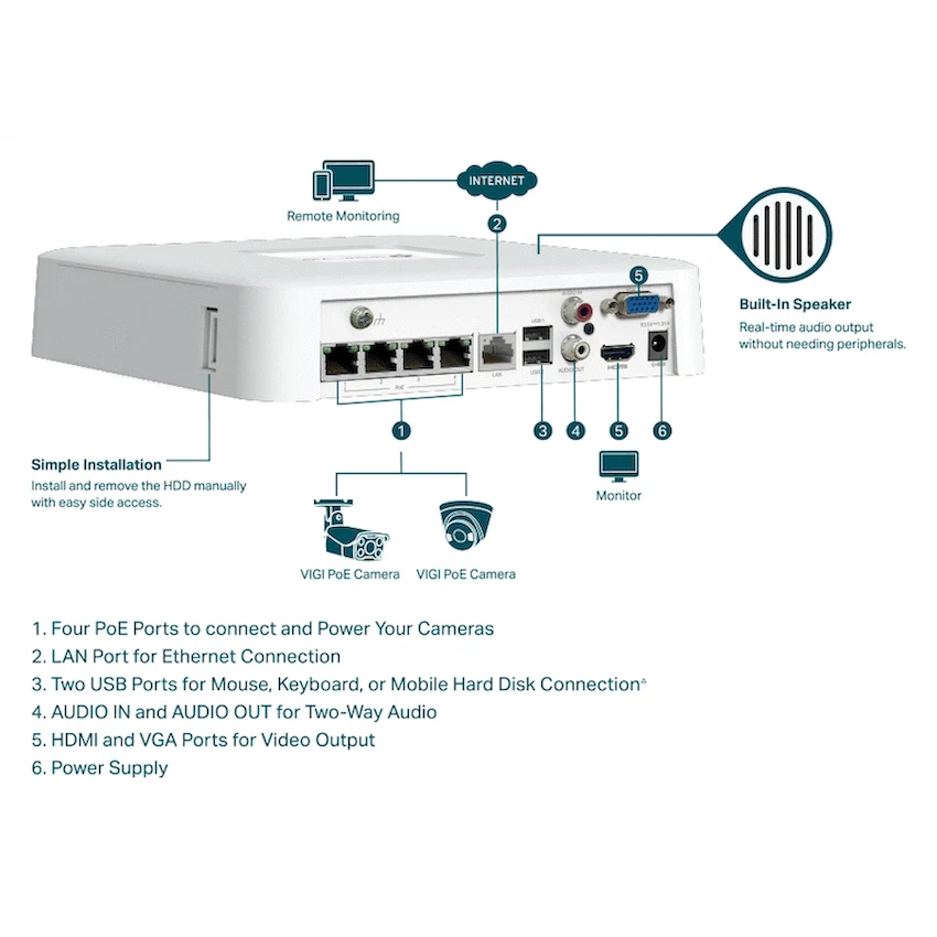 TP-Link Vigi NVR1104H-4P 4 Channel PoE Network Video Recorder