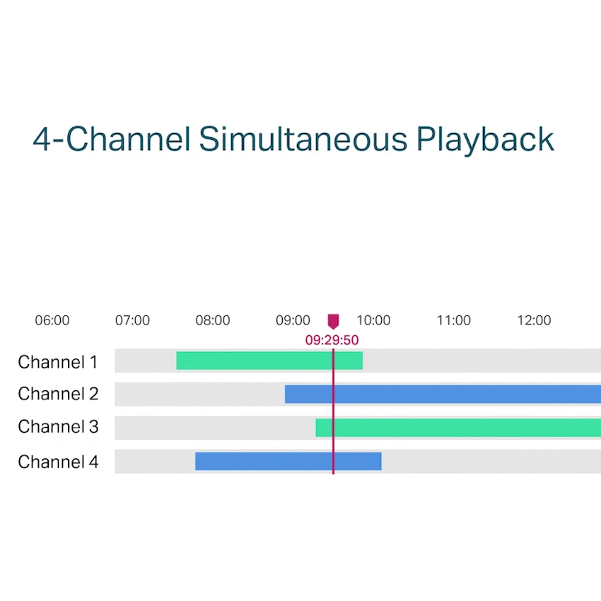 4-Channel Simultaneous Playback△ : Replay the feed from up to 4 cameras at the same time, increase replay speed, and find events in the video schedule to easily review footage.