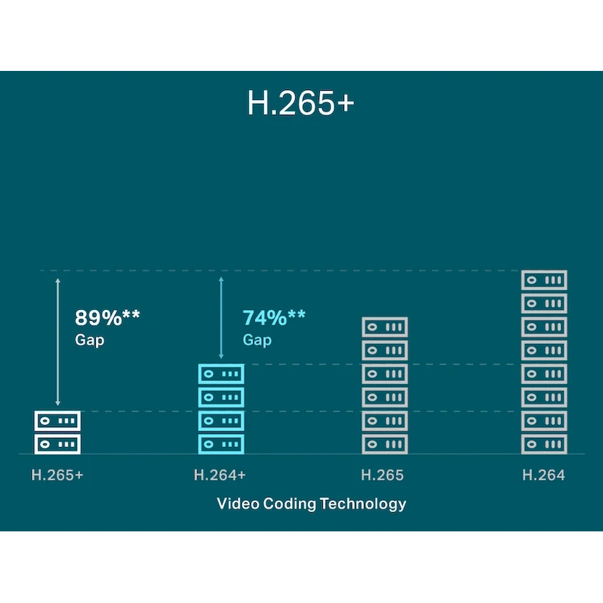 H.265+: Without using any extra bandwidth, your camera transmits compressed crystal-clear video to save disk space, ease network loads, and reduce monitoring costs without sacrificing image quality.