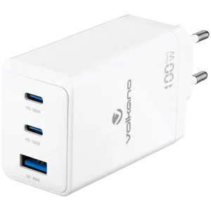 Volkano WattPro Series Triple Port 100W GanN Wall Charger - White