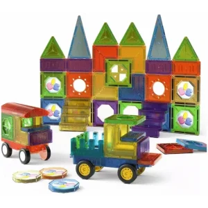 43 Magnetic Tiles with Windows and Car Parts