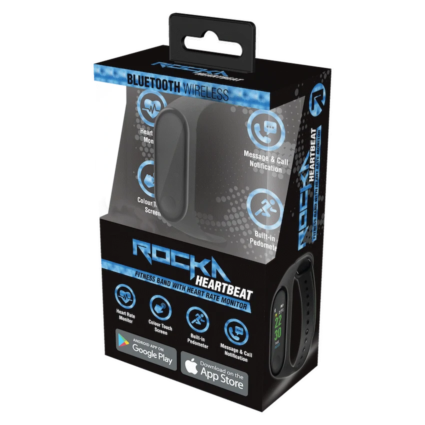 Rocka Heartbeat series Fitness Band with Heart Rate Monitor – Black PDQ of 10 Pcs
